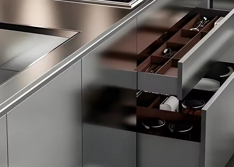 Both finishes work well depending on your preference. Matte finishes offer a modern, fingerprint-resistant surface ideal for daily use, while gloss finishes reflect light and enhance spaciousness, making them perfect for compact kitchens.
